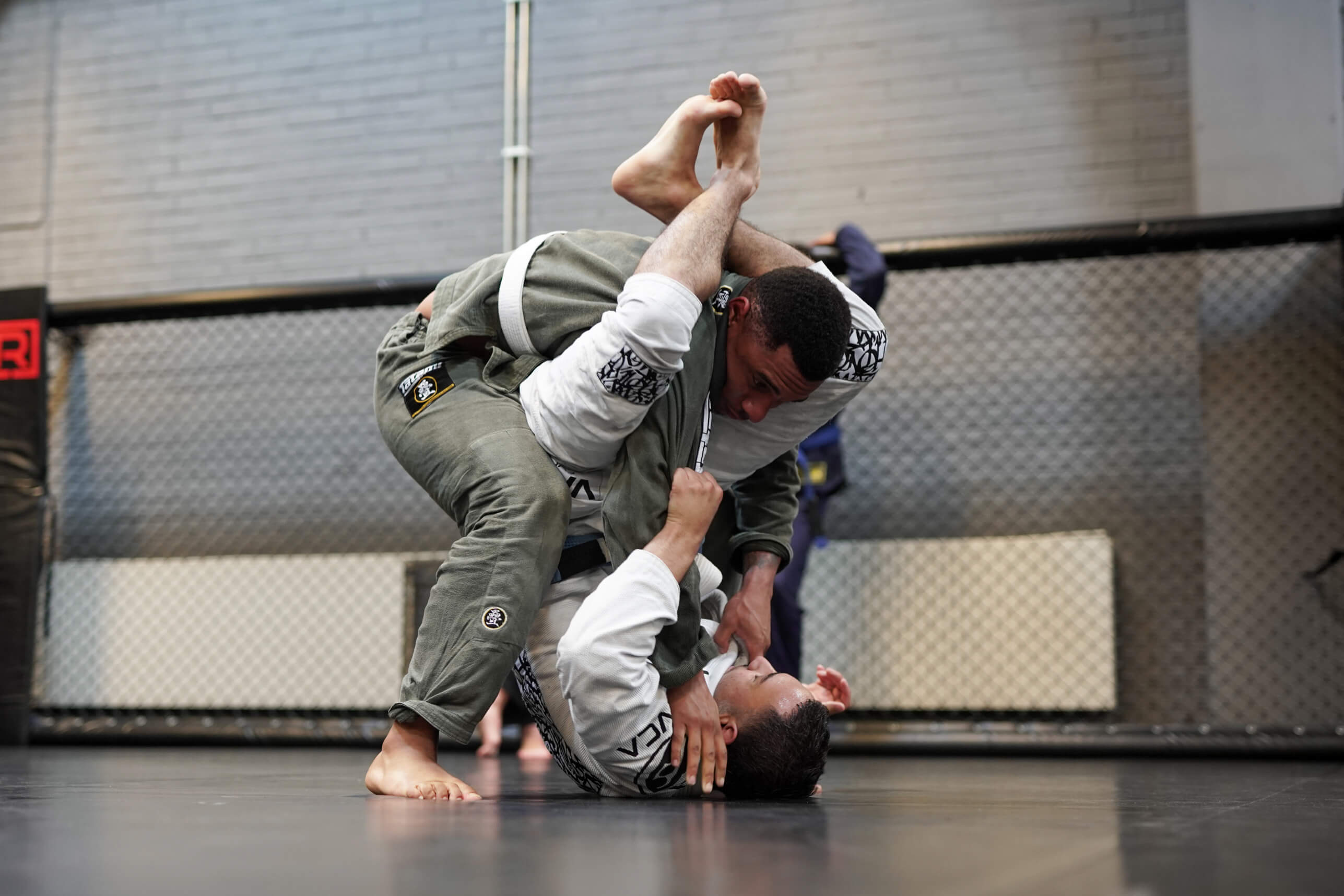 Brazilian Jiu-Jitsu. Fokus på markkamp, lås och strypningar. Teknik vinner över styrka.